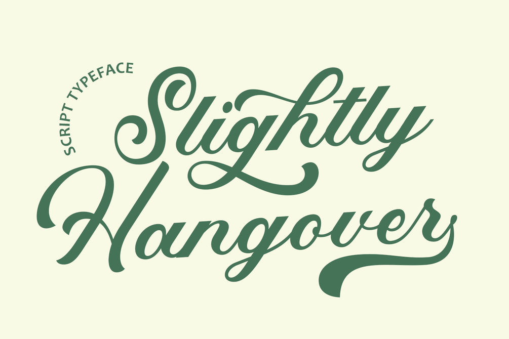 Slightly Hangover script typeface is a charming and informal font that captures the essence of handwritten calligraphy with a relaxed, slightly imperfect touch. Here's an explanation of its key features: