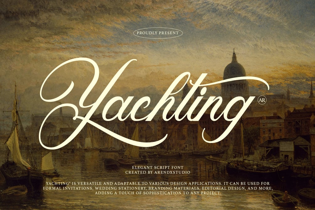 - Graceful Letterforms: "Yachting" features gracefully flowing letterforms with smooth curves and elegant flourishes. Each character is meticulously crafted to exude a sense of refinement and sophistication.